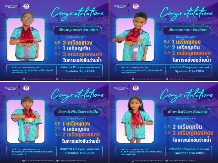 ขอแสดงความยินดี เด็กหญิงณัฐวรา ศรีไสววิไล การแข่งขันว่ายน้ำ