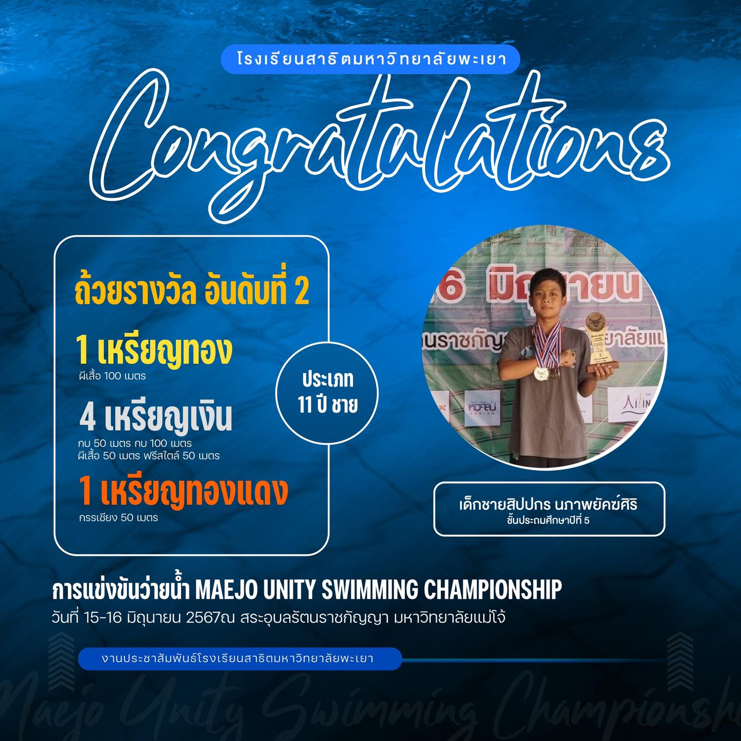 แสดงความยินดีกับเด็กชายสิปปกร นภาพยัคฆ์ศิริ ในการแข่งขันว่ายน้ำ