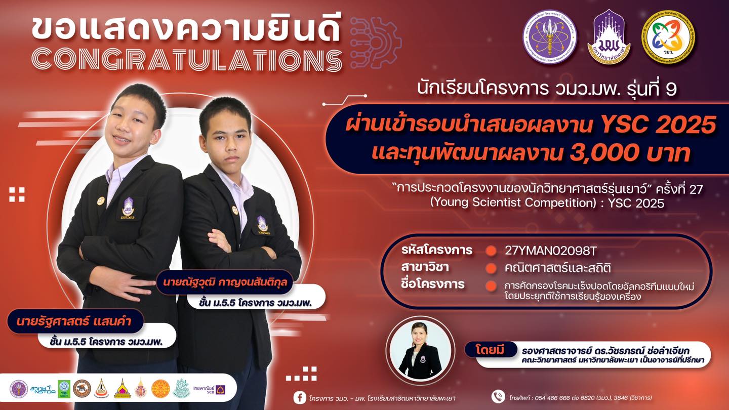 ในการประกวดโครงงานของนักวิทยาศาสตร์รุ่นเยาว์ (Young Scientist Competition: YSC) ภาคเหนือ มหาวิทยาลัยนเรศวร