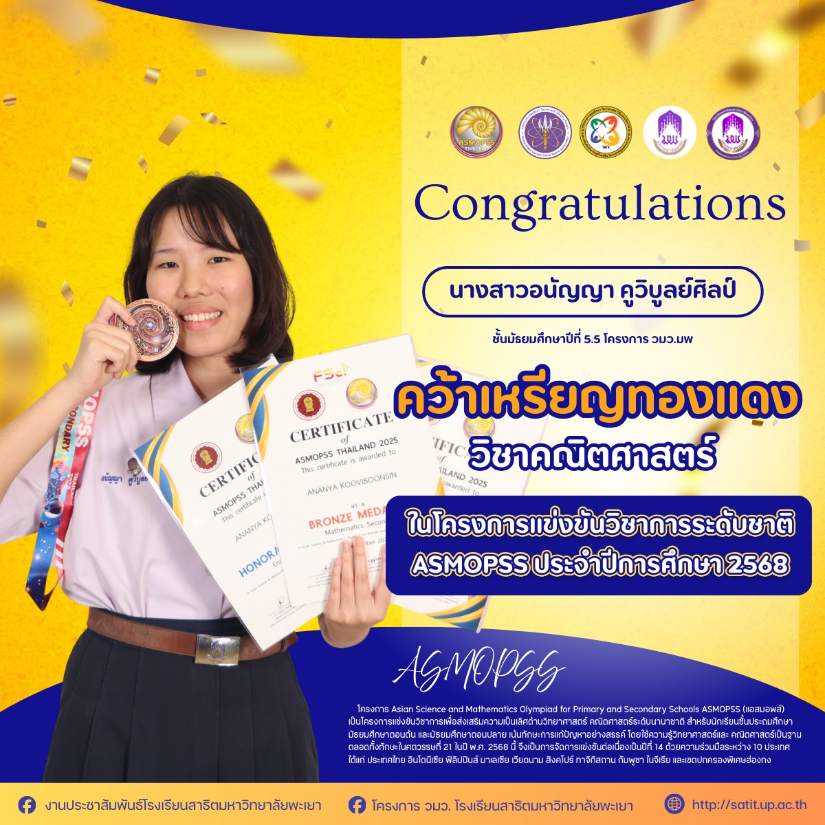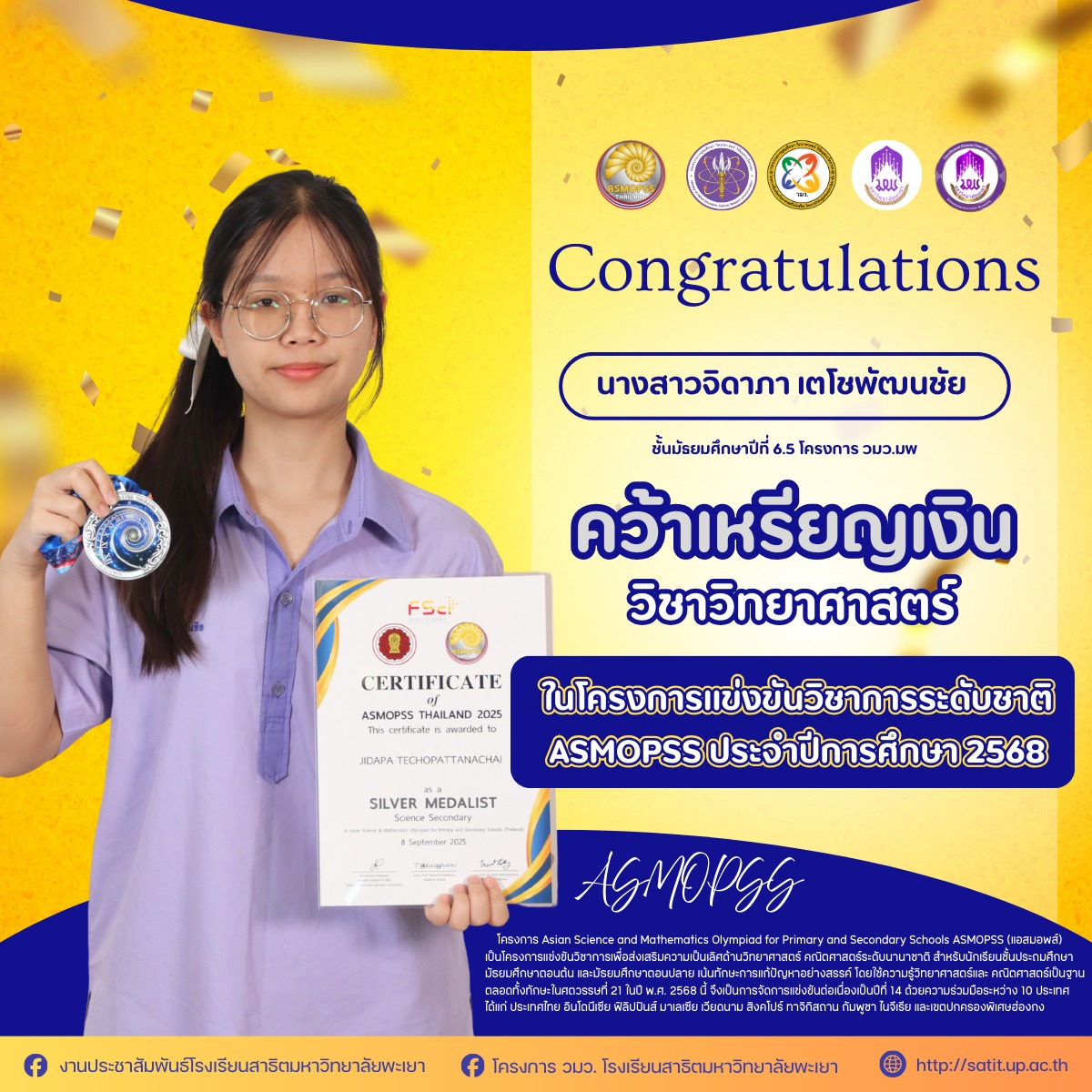 ได้รับรางวัล ในโครงการแข่งขันวิชาการระดับชาติ ASMOPSS ประจำปีการศึกษา 2568