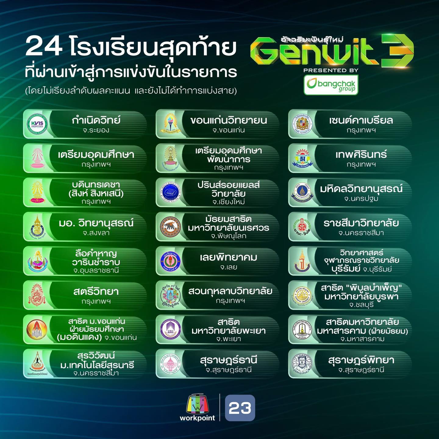 ผ่านเข้ารอบ 24 ทีม Genwit อัจฉริยะพันธุ์ใหม่